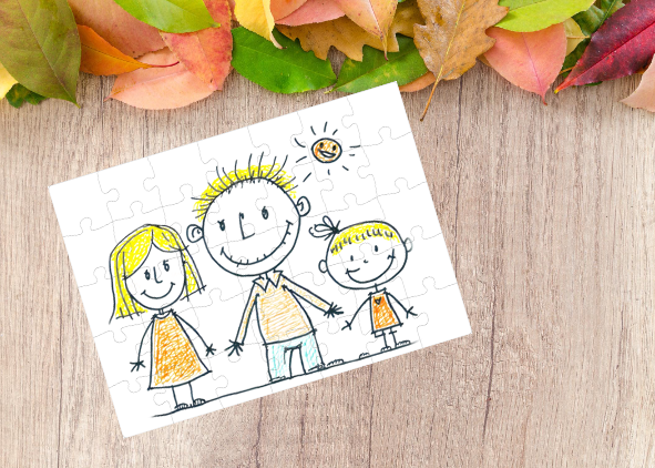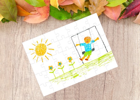 Stuur ons gewoon een foto of tekening van uw kind en wij printen deze op de puzzel.