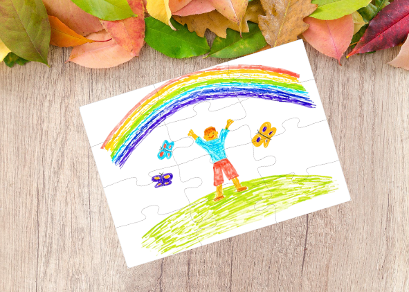 Stuur ons gewoon een foto of tekening van uw kind en wij printen deze op de puzzel.