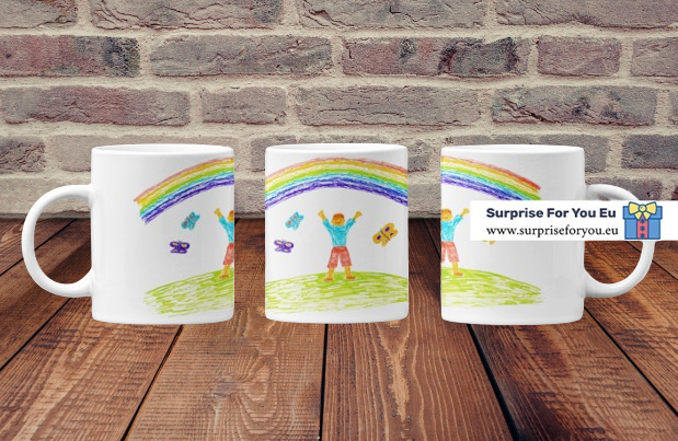 Stuur de creatie van uw kind, foto en ontvang een nieuwe mok.